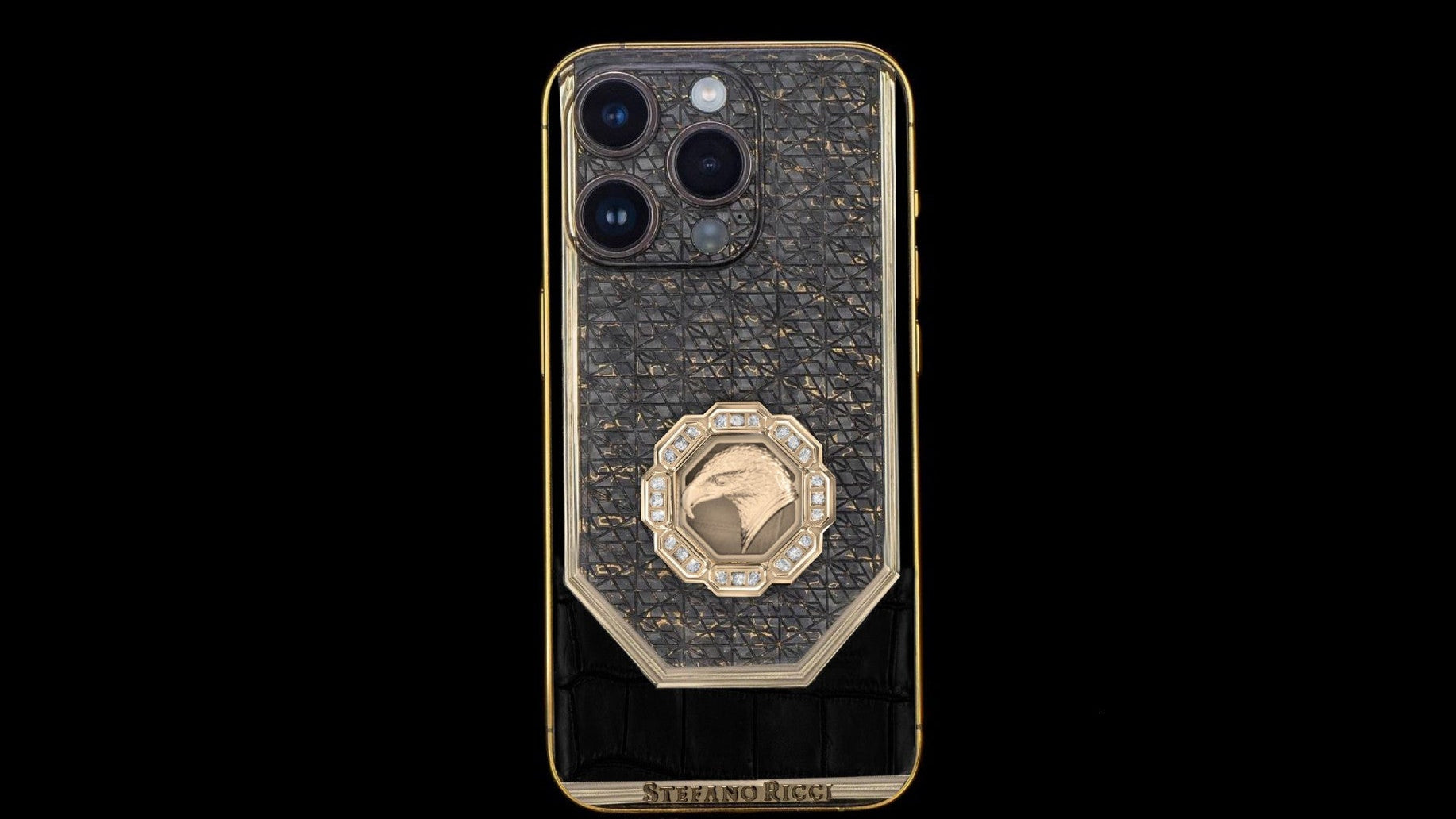 Die Rückseite besteht aus juwelenveredeltem Carbon, das Schlangenhautstrukturen nachbildet, kombiniert mit echtem Nilkrokodilleder, dessen Farbton Sie individuell wählen können.