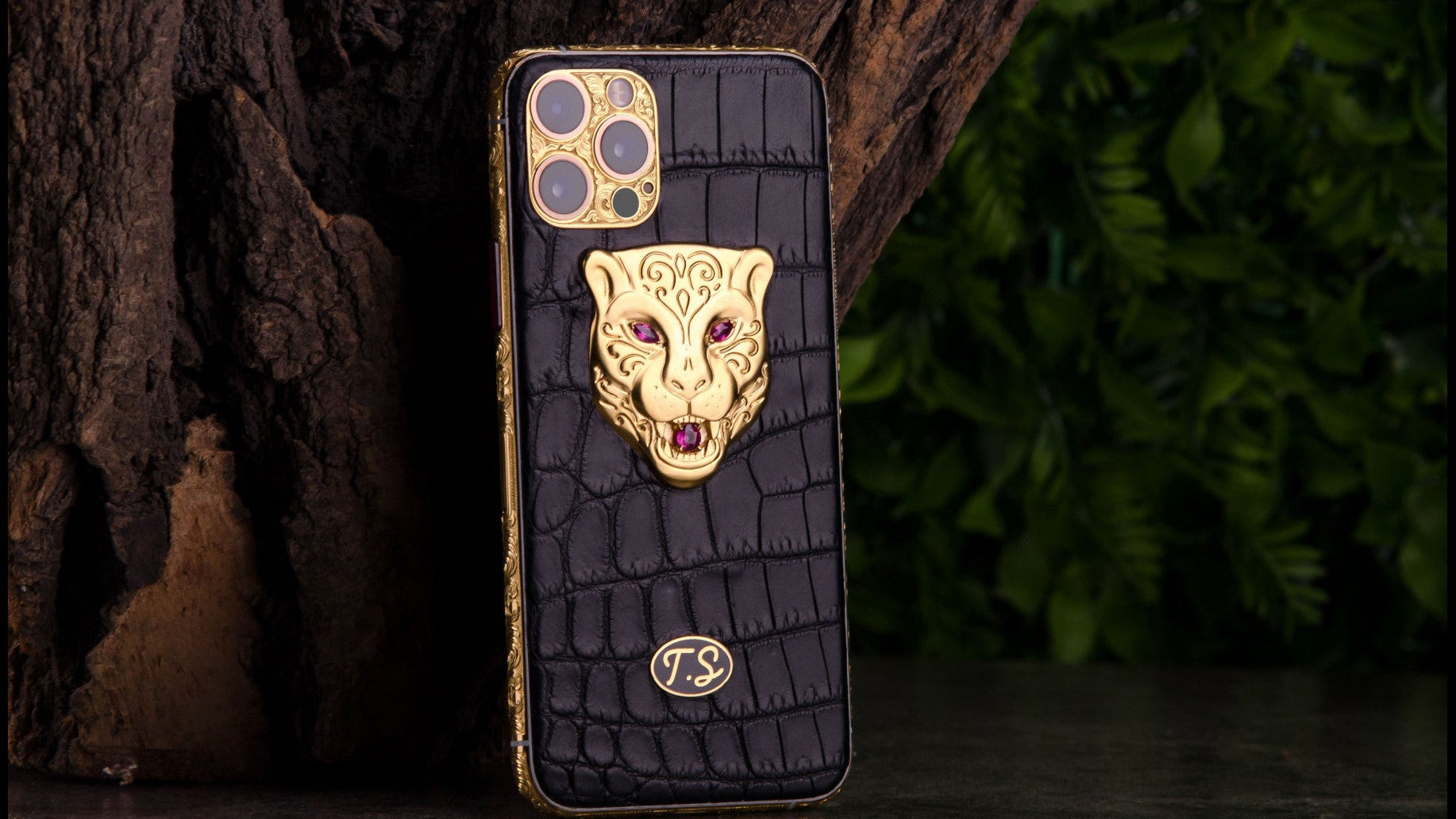 Die Seitenflächen, Tasten und der Kamerarahmen sind vollständig mit 24K Gold überzogen und mit aufwendigen Gravuren von Hand geschmückt.