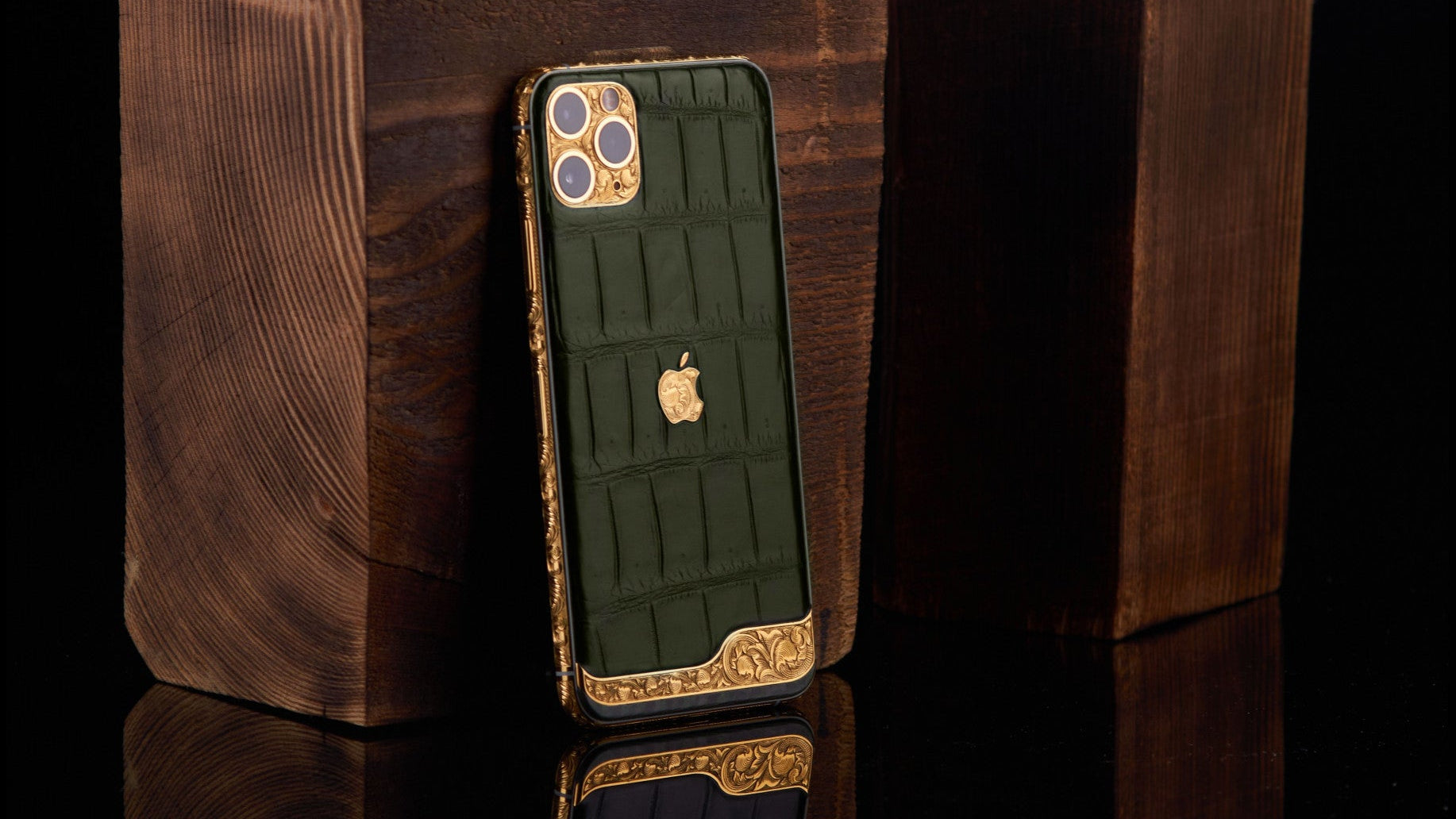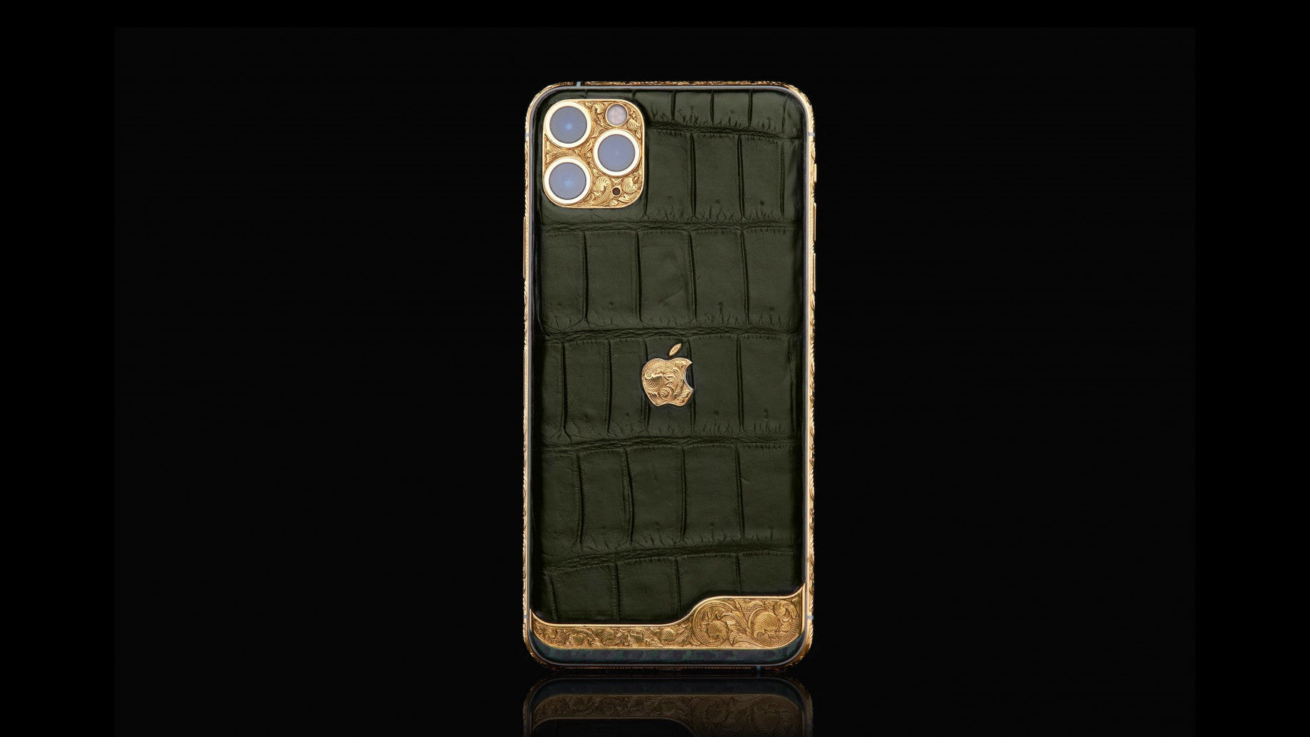 Das Gehäuse ist mit edlem Krokodilleder bezogen, während das Apple-Logo aus 18K Gold mit feiner Handgravur veredelt wurde.
