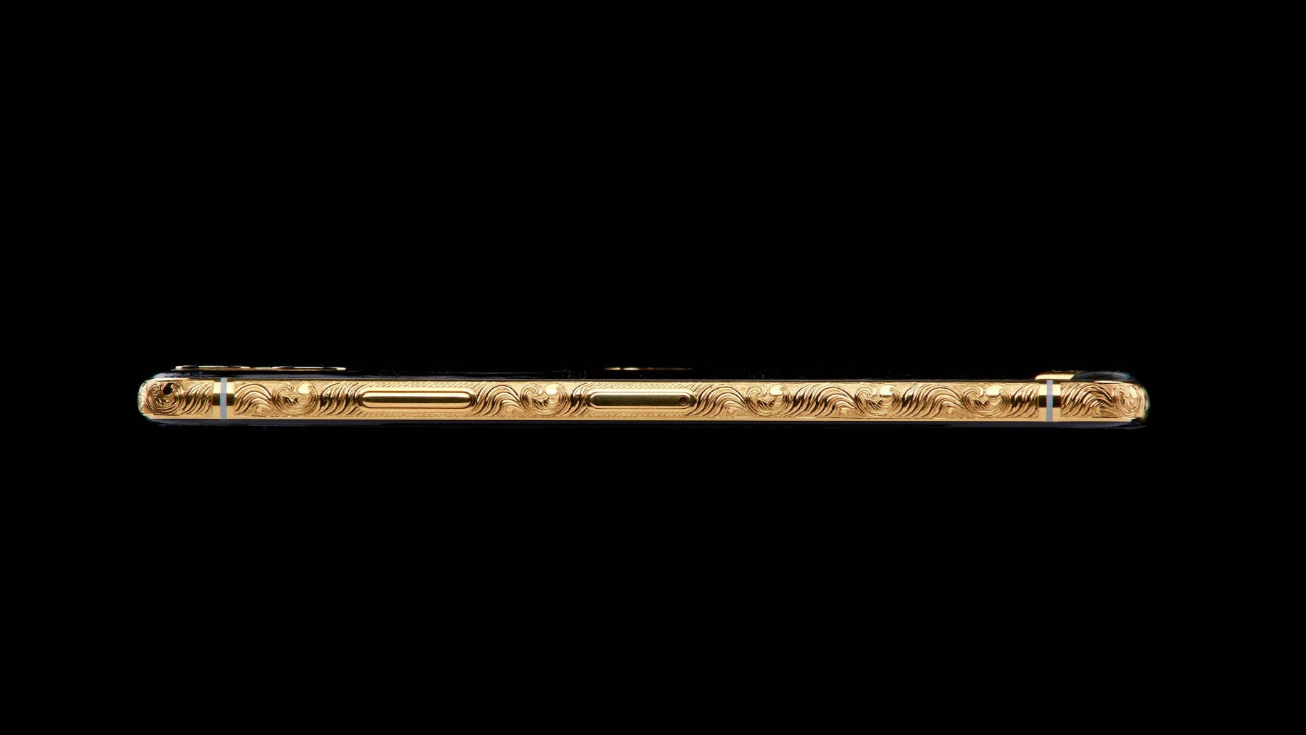 Die Rückplatte, Seitenränder, Tasten und der Kamerarahmen sind mit 24K Gold überzogen und mit präzisen Gravuren von Hand gestaltet.