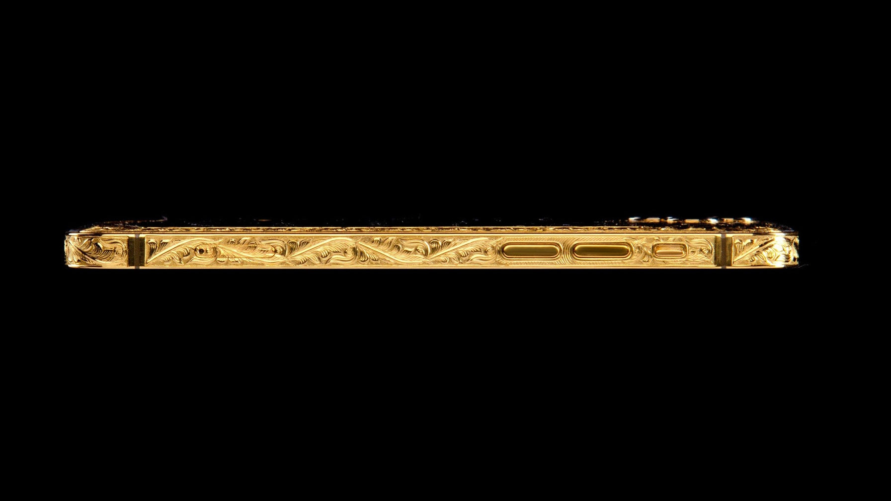 Die seitlichen Elemente und Tasten sind mit 24 Karat Gold beschichtet, auf dem kunstvolle Muster von Hand eingraviert werden.